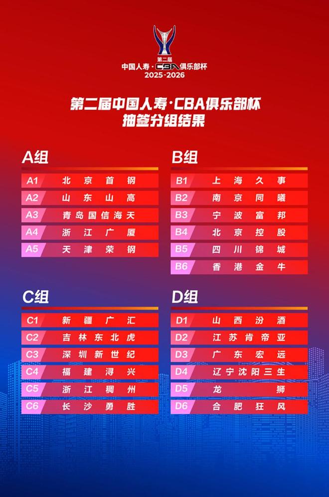第二届CBA俱乐部杯完成分组抽签,长沙勇胜迎来赛事首秀