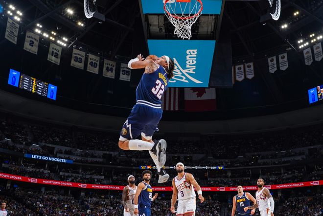 掘金开赛前17场比赛拿到13场胜利,但他们的进阶数据很可怕,场均得分123.8分联盟第二,仅次于热火;进攻效率124.3联盟第一,百回合净效率值+10.0联盟第三!和过去几个赛季都不太一样,虽然休赛期掘金补充了卡梅伦约翰逊+布鲁斯布朗+瓦兰+小哈达威这些即战力,但是新赛季开打没多久,几位大将轮流倒下!首先是布莱恩,和快船的比赛中与哈登碰撞在一起,导致左脚踝扭伤,至少要等到12月下旬才能接受复查。其次,球队防守悍将戈登遭遇右腿筋二级拉伤,和上赛季季后赛打雷霆时的伤情一样,那最快要等到明年1月份复查。