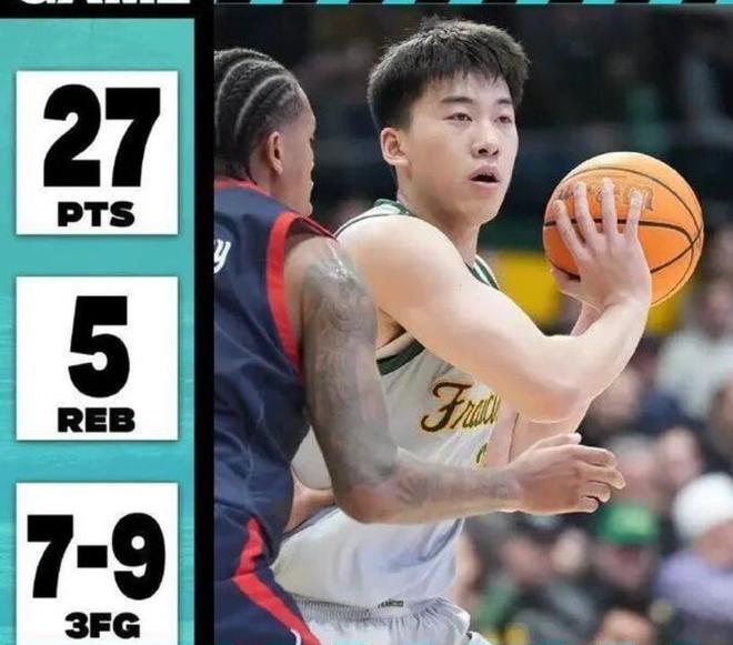 1月11日,NCAA常规赛,旧金山大学以80-60大胜佩珀代因大学,这场比赛中国球员王俊杰首发出场32分钟,投篮14投10中,其中三分球9投7中,拿到27分5篮板的数据。这不仅是王俊杰NCAA生涯单