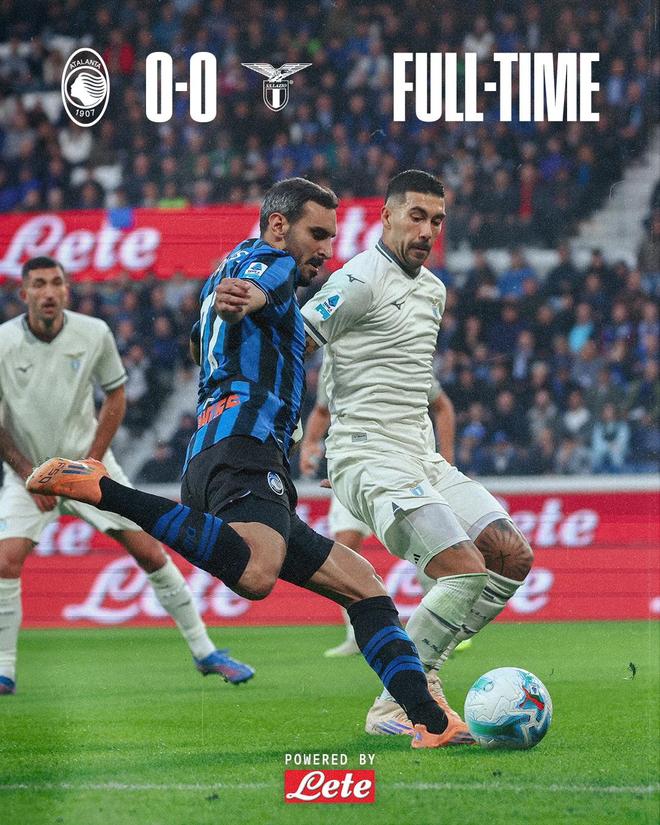 雷速体育10月20日宣 稍早前结束的意甲第7轮比赛中,亚特兰大主场0-0战平拉齐奥。