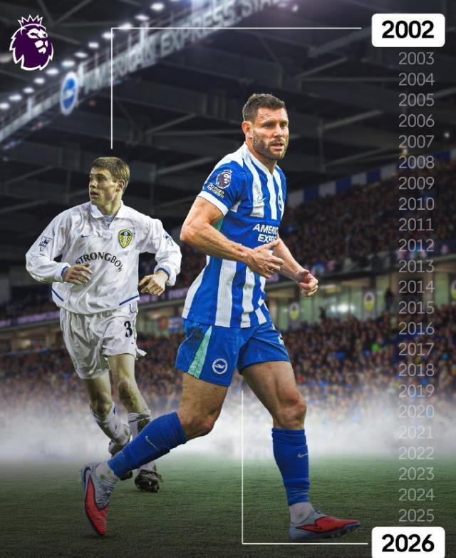 米尔纳的成就并非简单的“熬工龄”,本赛季他已经代表布莱顿出战11场英超比赛,场均跑动距离仍保持在10公里以上,这个数据让许多年轻球员都望尘莫及。如果按照目前的出场频率,米尔纳预计将在本赛季成功超越巴里,正式加冕“英超出场第一人”。不仅如此,他早已超越吉格斯、巴里、费迪南德等名宿,成为英超历史上出场赛季最多的球员。当这两项纪录集于一身时,米尔纳的名字将永远镌刻在英超丰碑之上。