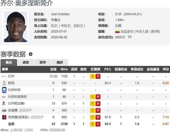 奥多涅斯的转会完毕之后,那么整个厄瓜多尔的中后场主力悉数效力五大联赛,这也会创造一项非常有价值的新纪录。奥多涅斯是厄瓜多尔国家队的首发后卫司职中后卫的,也可以打边后卫的,在世预赛的整体表现非常出色。虽然他们被扣掉了3分,不过仍旧拿到了8胜8平2负的成绩,排在整个世预赛南美区的第二名,比巴西的分数还要多。进了14个球,仅仅丢掉5个球,发挥堪称完美。